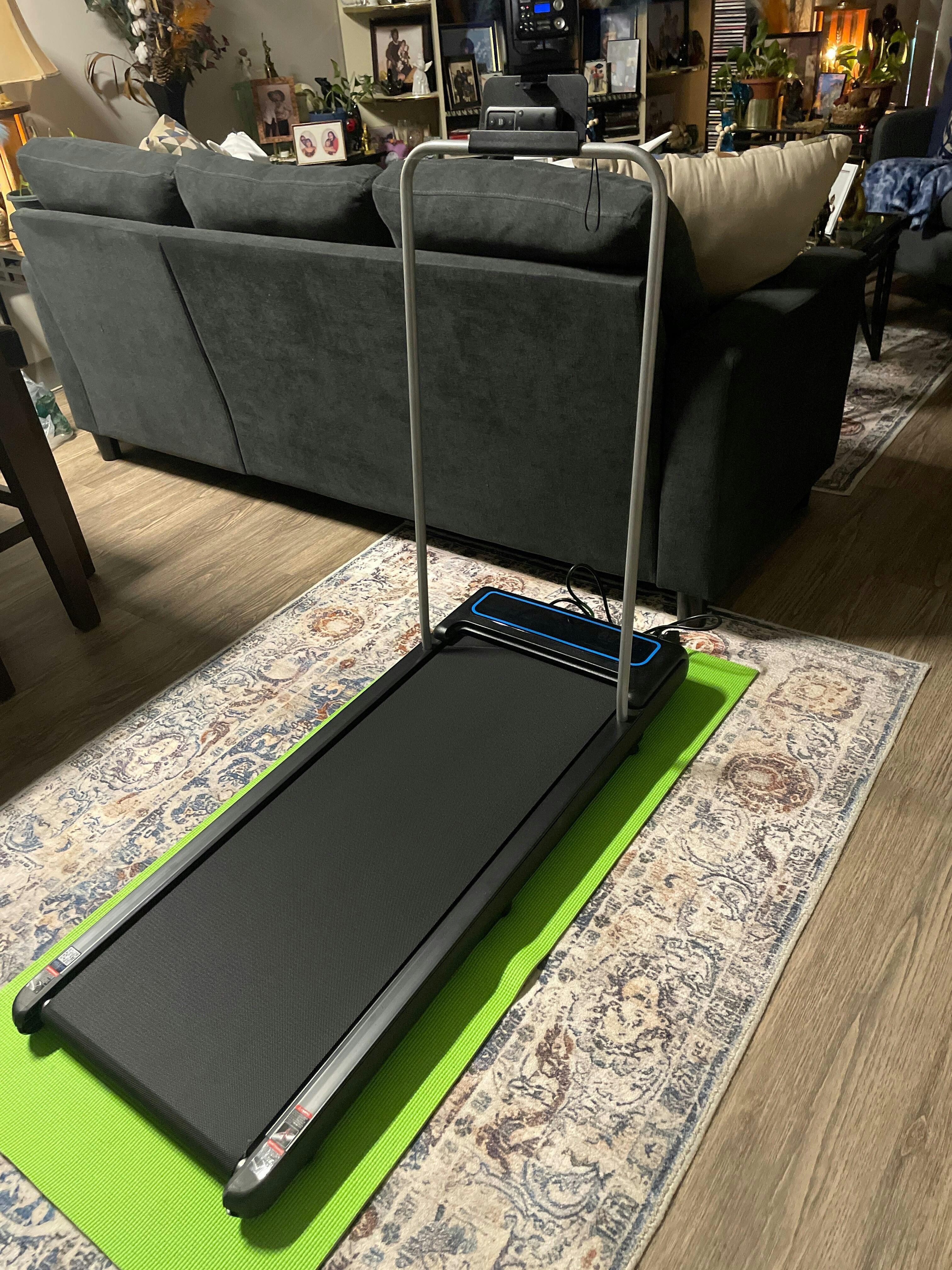 With a sleek and compact design of 42.9" x 17.75" x 4.3", this treadmill easily slides under your bed, sofa, or desk—perfect for small spaces! Whether you're working, relaxing, or tidying up, store it effortlessly and keep your space clutter-free.